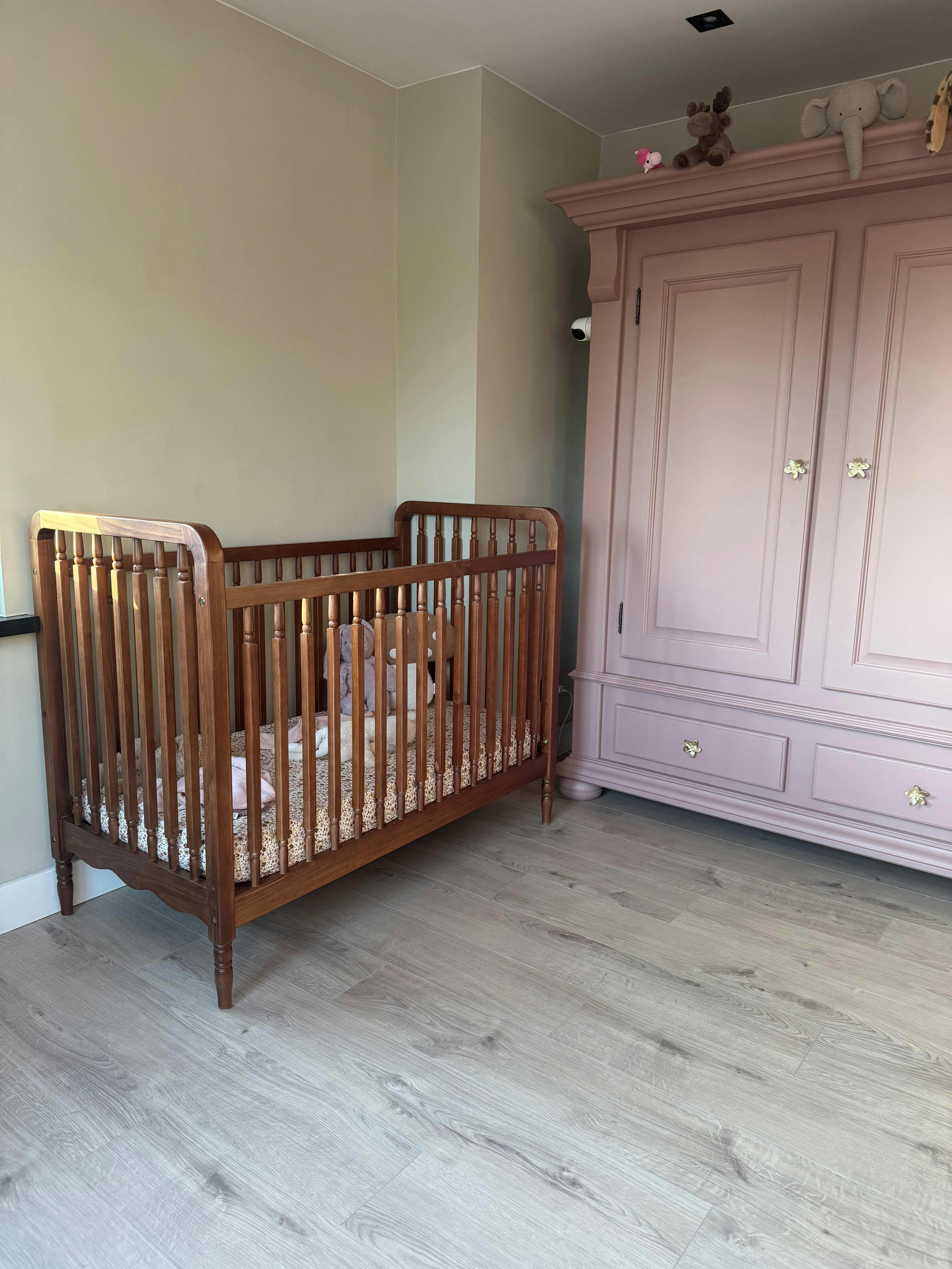 Create a timeless nursery with the Frannie & Rose Heritage Cot, a vintage-inspired baby cot lovingly crafted from solid wood. Designed with gentle curves, spindle bars, and a warm natural finish, this cot brings heirloom charm to your baby’s room while meeting the highest modern safety standards.