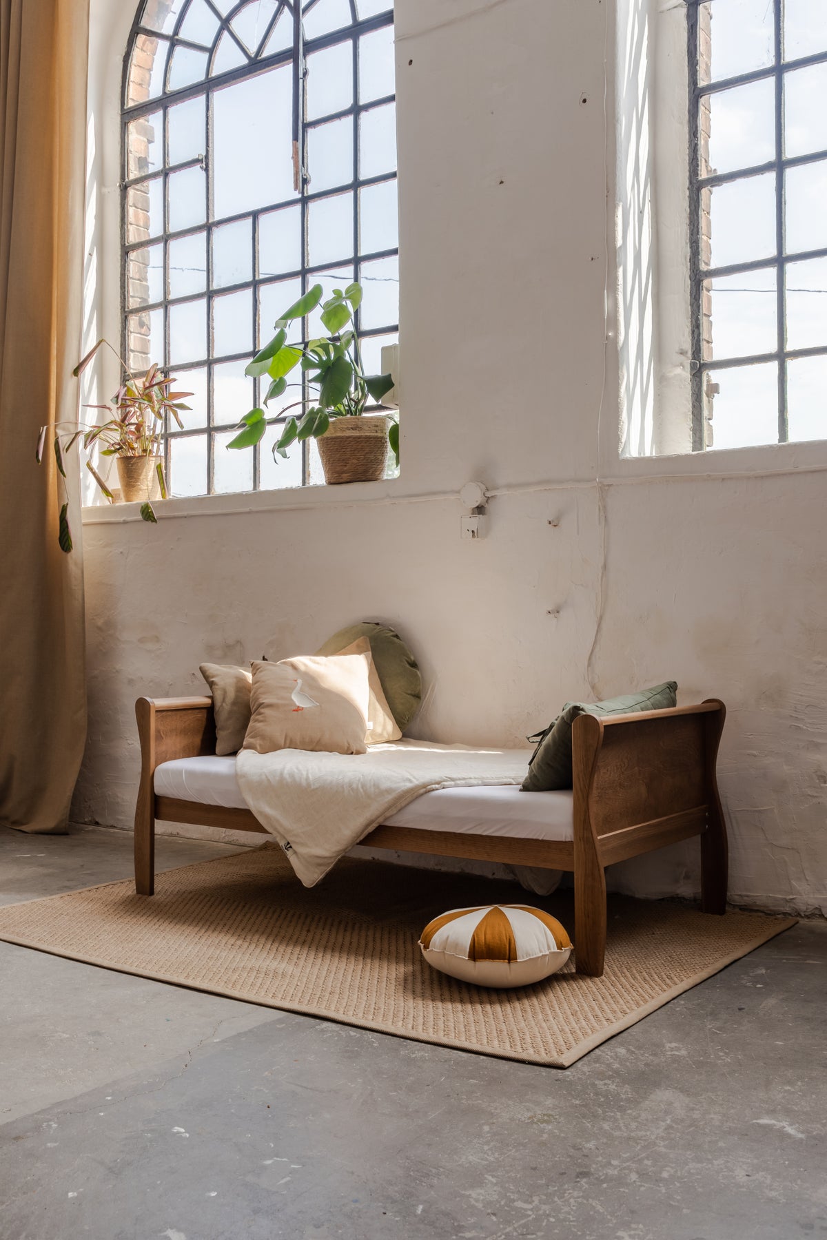 Verleihen Sie dem Kinderzimmer warmen Vintage‑Charme: Die limitierte Noble‑Edition in hellem Walnuss‑Finish verbindet Massivkiefer, abnehmbare Schutzgitter und eine niedrige Bauhöhe, die Sicherheit und Selbstvertrauen fördert. Ein schönes, in der EU gefertigtes Kinderzimmermöbelstück, das mit Ihrem Kind mitwächst.