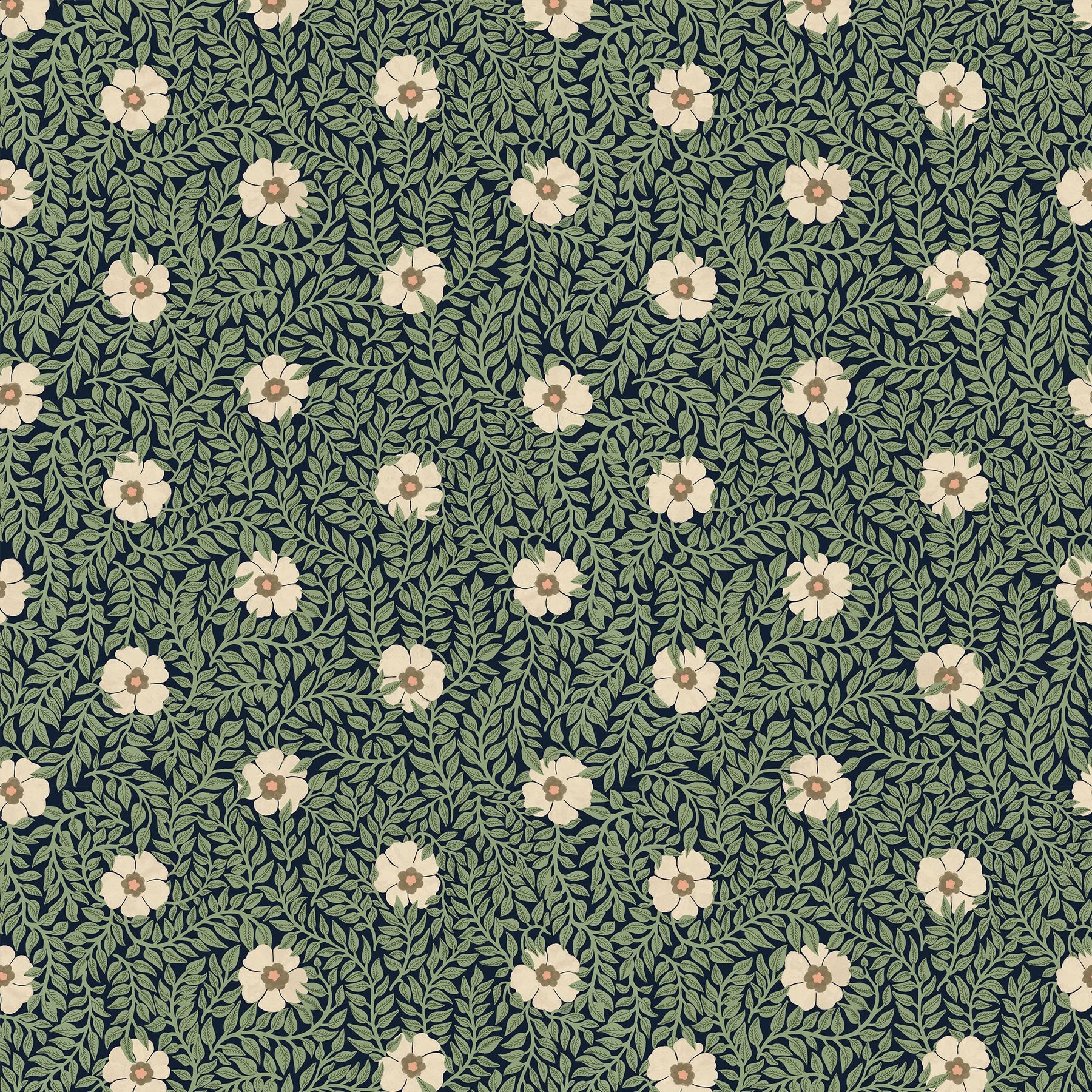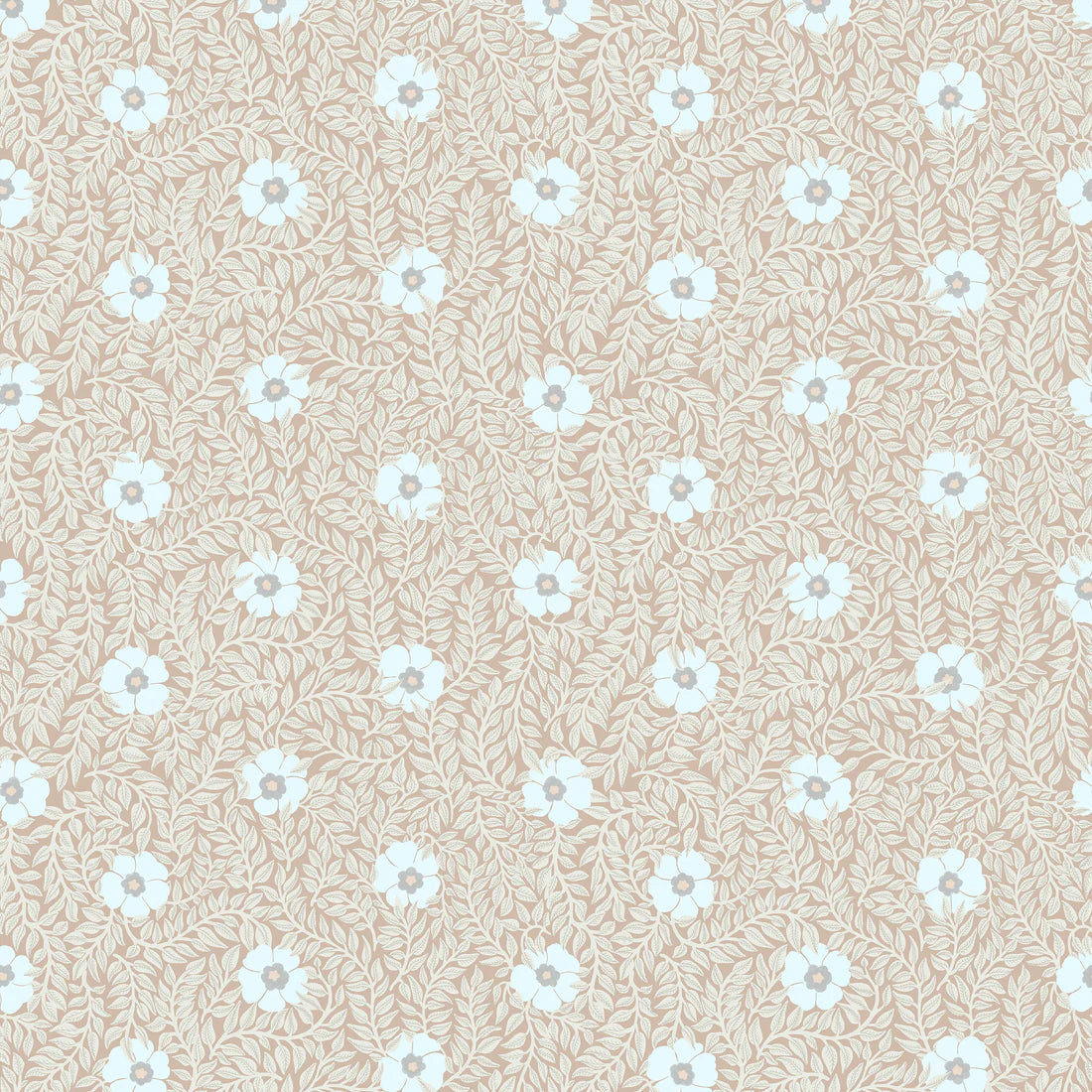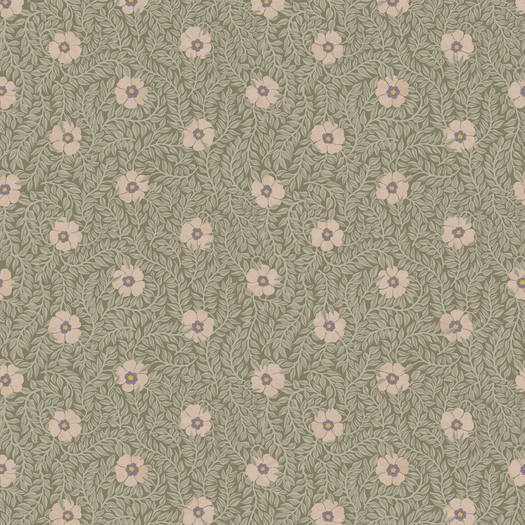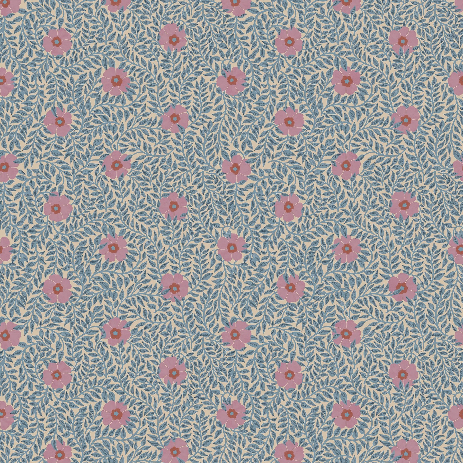 Handgezeichnet von der schwedischen Künstlerin Kicki Fjell: Dieses zarte Blatt‑und‑Blumenmuster verleiht Ihren Wänden eine leicht nostalgische, gleichzeitig zeitlose Atmosphäre - ideal, um dem Kinderzimmer, der Küche oder jedem anderen Raum eine sanfte, charmante Note zu geben. Erhältlich in mehreren Farbstellungen; hier abgebildet mit blauen Blättern und rosa Blüten.
