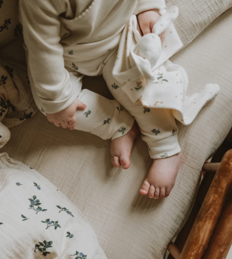 Envuelve el colchón de la cuna de tu bebé con muselina de algodón transpirable y de tacto aterciopelado que permanece ajustada ante cada movimiento. Esta refinada sábana bajera combina confort ligero con un elástico perimetral seguro y estampados inspirados en la naturaleza. Fabricada de forma ética en Portugal, es delicada con la piel sensible.
