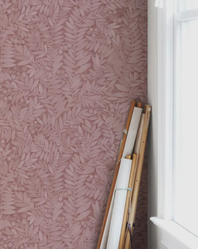 Strati lussureggianti di fogliame e bacche minute evocano un giardino incantato sulle tue pareti: Eve è una carta da parati a motivi fogliari creata dalla designer svedese Cecilia Pettersson, che infonde vitalità naturale in ogni stanza.