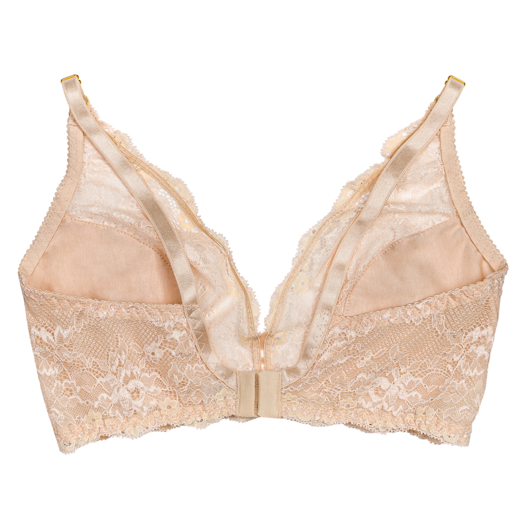 Wikkel jezelf in zachte, romantische kant die je borstvoedingsperiode moeiteloos ondersteunt. Deze sluitingsloze voedingsbralette combineert heerlijk draagcomfort met cups die je snel opzij trekt, een katoenen voering voor een gevoelige huid en een flatterende champagnekleur die je graag draagt tijdens zwangerschap, het kraambed en daarna.