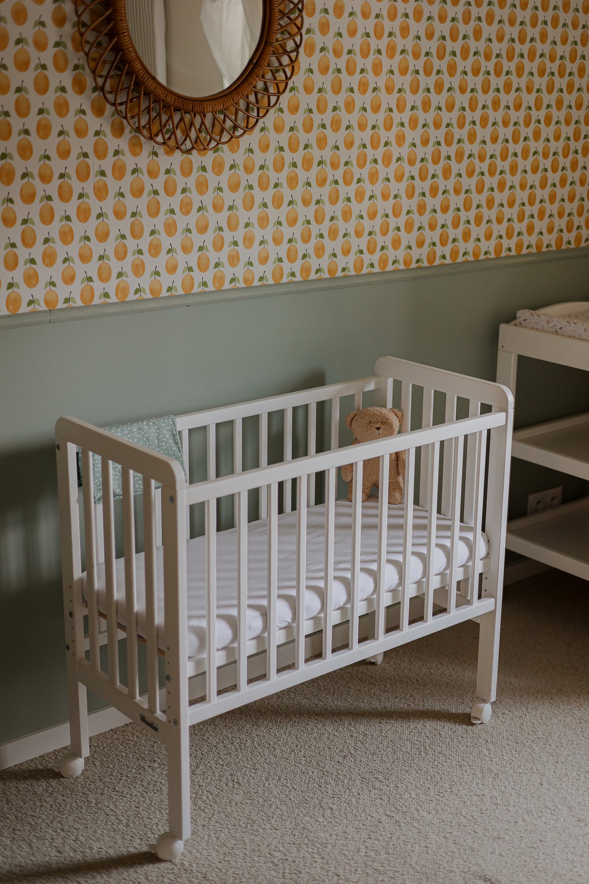 Houd je pasgeborene dichtbij en slaap rustiger met deze compacte houten co-sleeper van Woodies. Gebruik hem als veilige co-sleeper of als zelfstandig ledikant. De ademende zijden, verstelbare hoogte en tijdloze witte afwerking maken hem een natuurlijke keuze voor moderne, ruimtebewuste babykamers.
