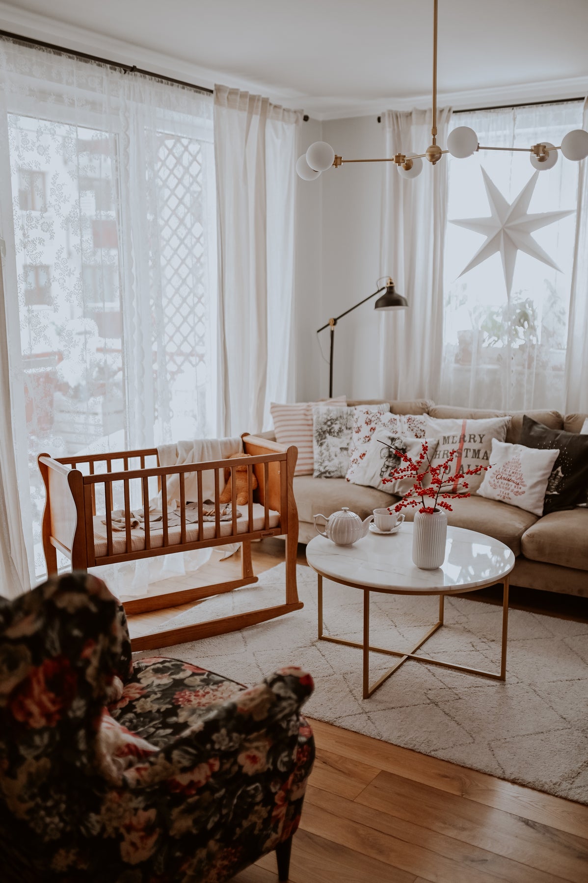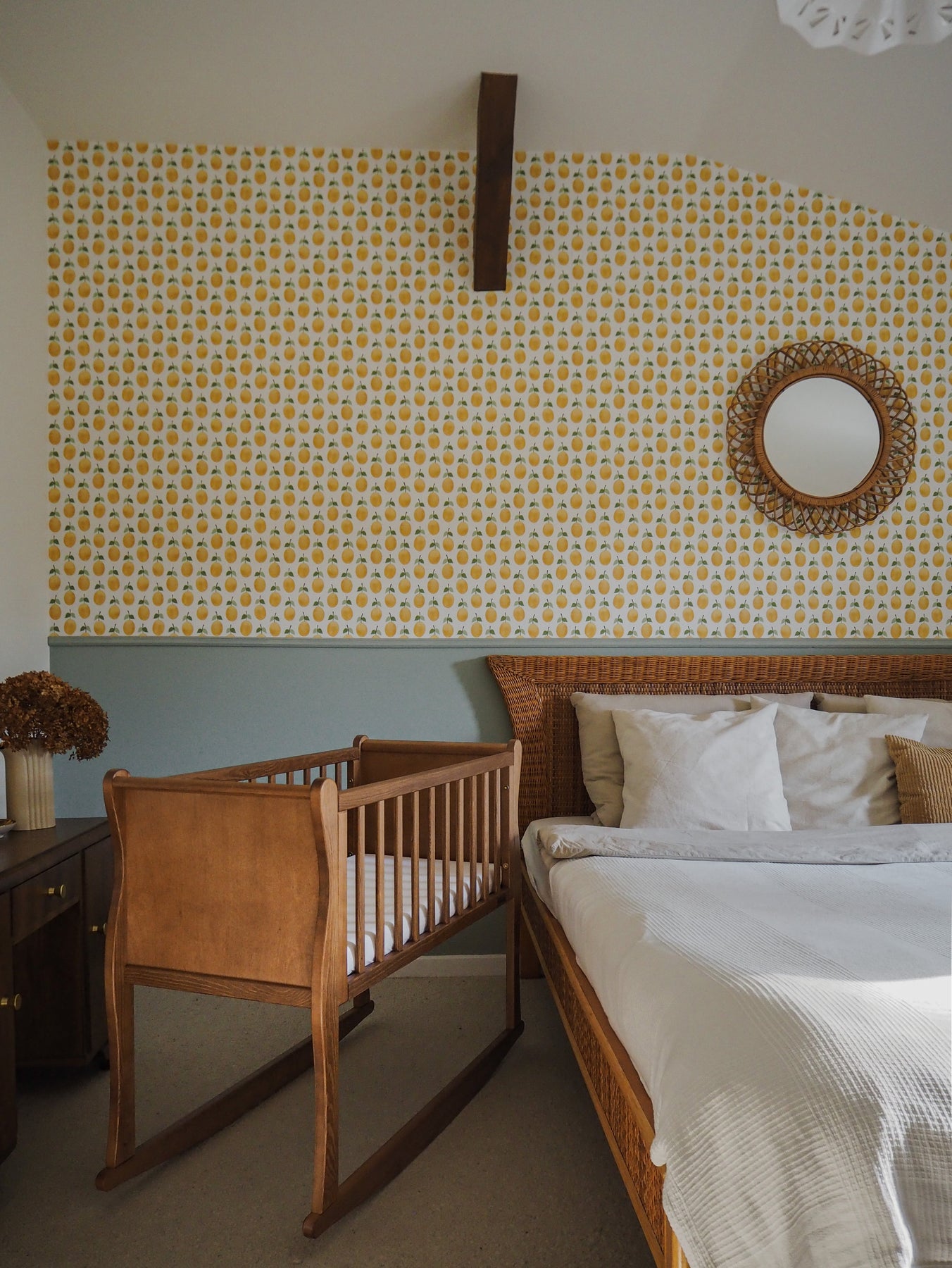 A charming, space-saving mini crib that brings warm vintage character to your nursery while keeping your newborn secure and comfortable—perfect beside your bed or in smaller rooms, and crafted in the EU for everyday peace of mind.