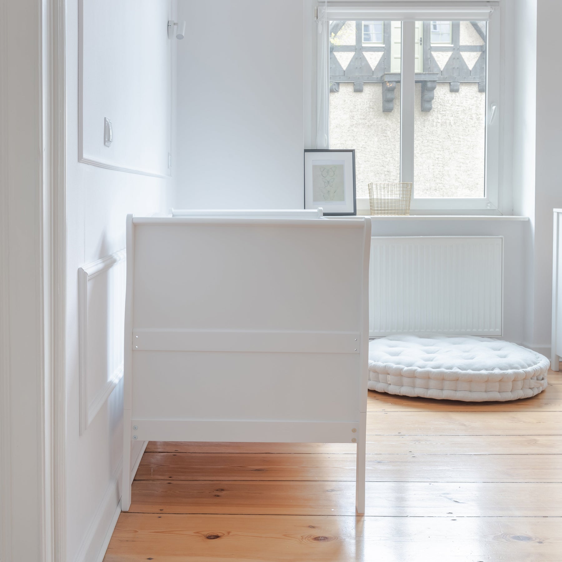- Все в одному для сну: елегантне ліжечко для немовлят, що легко перетворюється на дитяче ліжко.
